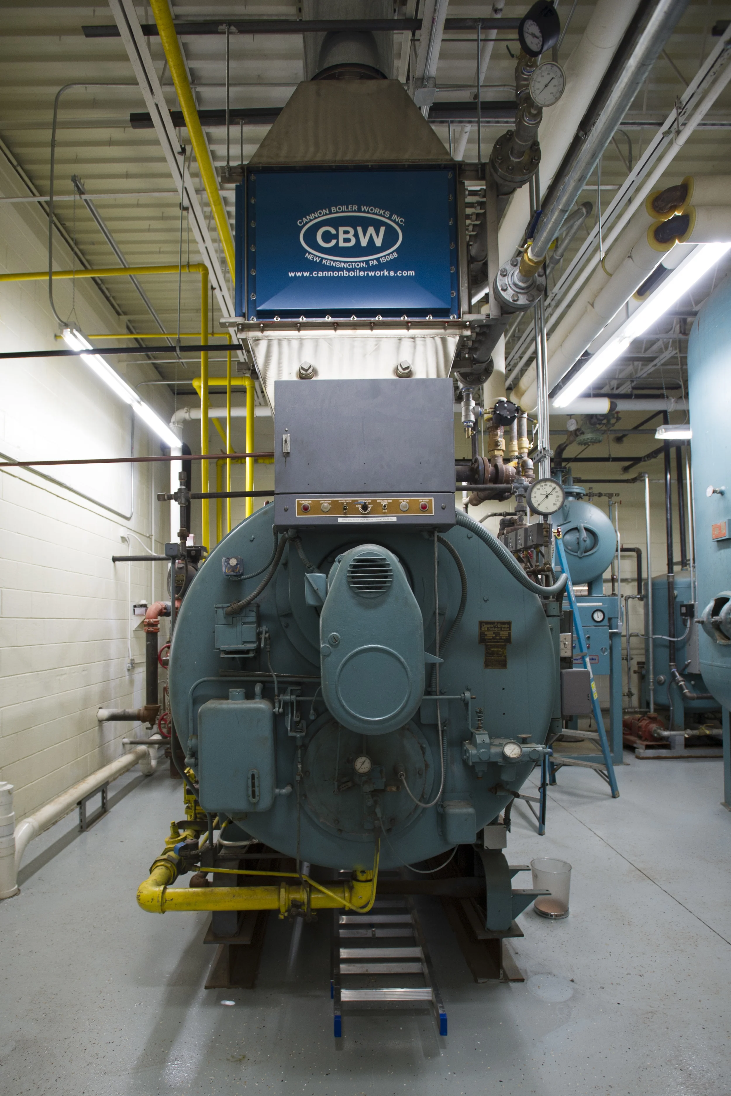 As one can imagine, a commercial laundry like Sunshine has a high demand for hot water. In fact at Sunshine we have a 5000 gallon hot water heater that brings incoming city water up to 160 degrees before it is sent to the wash room. To generate this volume of hot water we use a 150 horse power steam boiler. This year we added a stack economizer to improve the efficiency by which we make hot water. The stack economizer works by passing incoming city water through the exhaust stack of our boiler. The efficiency gain is achieved when incoming water passes through the 400 degree exhaust it rises in temperature an average of 60 degrees. This increase in water temperature allows our boiler to throttle itself down, significantly reducing the amount of natural gas we need to burn in order to meet our hot water demand.